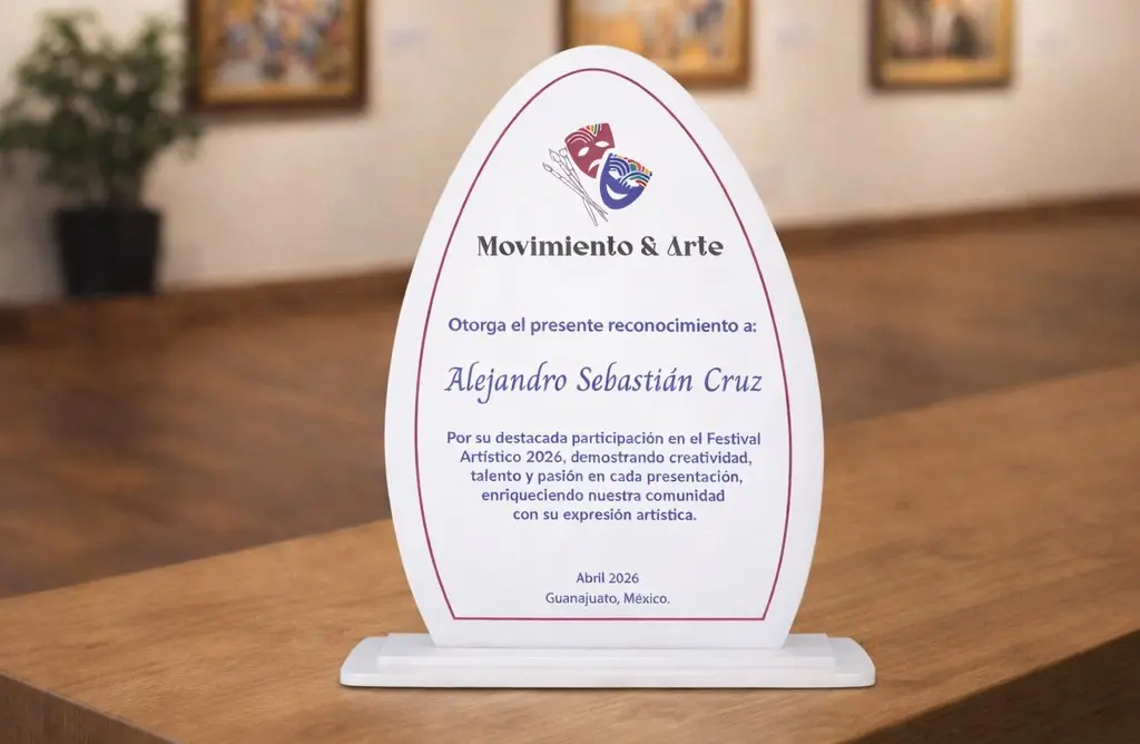 Cuenta con impresión a color, que realza la información personalizada y le da un acabado elegante y profesional. Es una pieza duradera, resistente y de gran presencia visual, perfecta para eventos corporativos, premiaciones, aniversarios, eventos escolares, deportivos y mas.